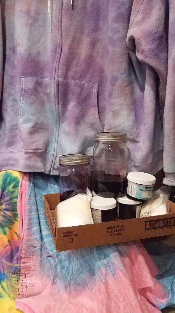 Whether you are using dye for making batik cloth or tie-dye, I have found an incredible resource at Dharma Trading Co. This is the place to find exactly the right color you are looking for. You can use tie-dye kits found at art and craft stores like Tulip Brand, but I like going for a custom look. When using fiber reactive dyes, you’ll need to prepare it with Urea. Urea is a chemical that is mixed with the fiber reactive dye to keep the moisture in the fabric allowing the dye to cure longer. What does that mean? For example, remember dying Easter eggs? If you leave the egg in longer the brighter the color is, right? Same for the fabric.