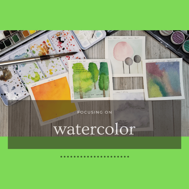 I have a busy year full of goals. So how am I going to get better at watercolor? Practice. Practice every day. I think that I will cut up some watercolor paper into 4″x 4″ squares and pick a topic to focus on. For instance, I mentioned starting with washes. I will also take notes on what paint I used, the colors, the brush, brush size and perhaps a little reflection on what worked and what didn’t. I think that is an important detail. Nothing frustrates me more than working with materials that don’t work with me. We all eventually find our favorite brush, pen, marker, paper, etc. I think that is when you know you’ve arrived.